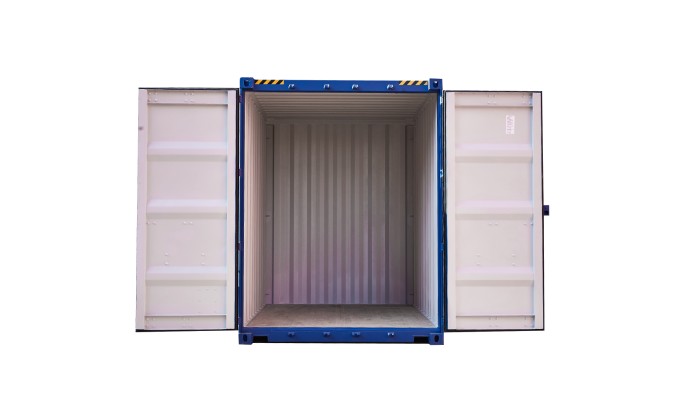 Zugang nur an einem Ende über Doppeltür. Transport und Entladung je nach Zielort gegen Aufpreis. Farbe je nach Lieferung (keine Farbauswahl möglich).