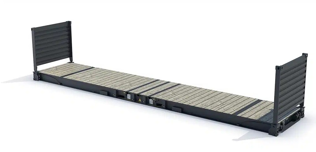 40-Fuß-Flat-Rack-Container — ideal für schwere, übergroße oder unregelmäßige Ladung. Offene Seiten, extrem belastbar, ISO-zertifiziert.